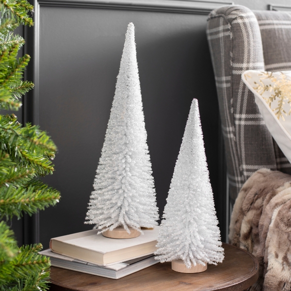 White Bottle Brush Christmas Trees