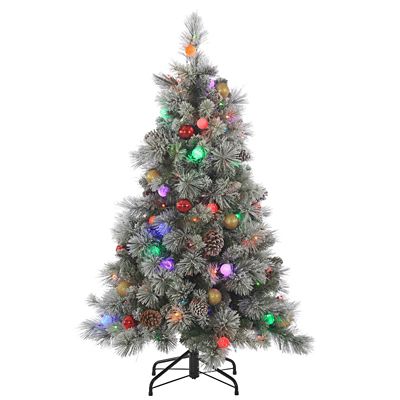 Sterling Tree Company 4 5 Ft Pre Lit Flocked Hard Needle Pine Christmas Tree With Ornaments 586145m At Tractor Supply Co